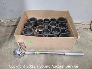 Lot #0336: Large 3/4" Drive Sockets & Ratchet