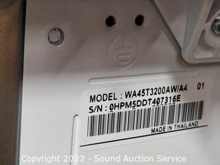 Lot Details: Recently purchased by the consignor and now moving, pulled from the home working. Mfg. Date 04-2022. Model WA45T3200AW, Serial 0HPM5DDT407316E. 44" H x 26.5" W x 26.5". In great cosmetic condition. Comes with manual, no hoses.