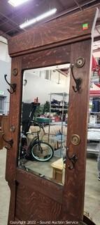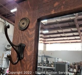 Lot #0030: Vintage Tiger Oak Hall Tree Entryway Bench