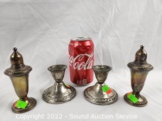 Lot #0064: Weighted Sterling Salt, Pepper & Candleholders