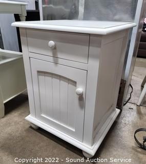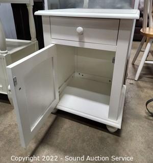 Lot #0013: White Finish Single Drawer Side Table Cabinet