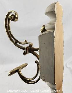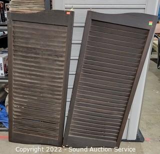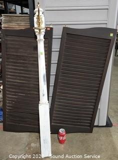 Lot #0080: Wooden Shutter Doors & White Post w/Brass Hook