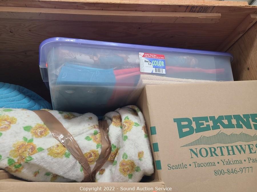 Lot Details: Each vault is approx. 83" H x 60" W x 83" D. Refer to photos for vault contents, what you see in the photos is what we see, we have not gone through vaults. Preview online only, contents of vaults may not be gone through. Vaults themselves & blankets not included. As is, no refunds.