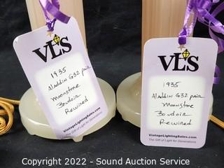 Lot #0185: 2 Vtg. 1935 Aladdin G32 Moonstone Boudoir Lamps
