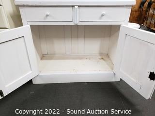 332 Lots including; Antique Armoires, Treasure 1921 Sterling Silverware Set, Sterling Goblets, Vtg. Solid Tiger Oak 4-Drawer File Cabinets, Vintage Mahogany Leather Top Executive Desk, Vtg. Aladdin Glass Boudoir Lamps, Antique Double Harpoon Barn Hay Hook, Nice Wrought Iron 4-Tier Bakers Rack, Stainless Steel File Drawer Desk, Vtg. Penn White Metal Kitchen Queen Cabinet, Vtg. Mid-Century Waterfall Style Hutch, Painted Furniture, 2pc White Wicker Furniture, Liquor Crates, Household Goods, Footwear, Gloves, Tools, Clocks, Collectibles, Home Decor, Artwork, Health & Beauty, Bed & Bath & Much More!!!