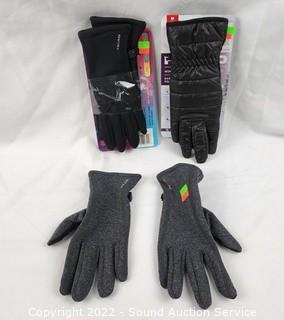 Lot #0300: 3 Pair Ladies Head Touch Screen Gloves S:Med