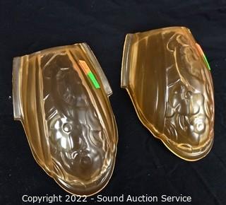 Lot #0072: (4) 7" Peach Glass Bat Wing Slip Shades