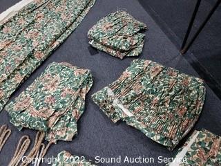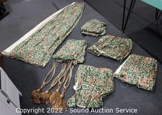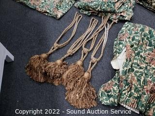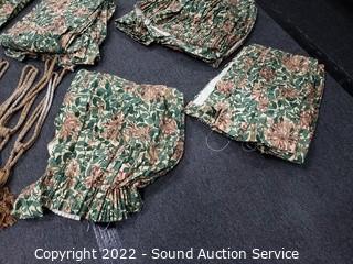 Lot #0113: 6 Green Floral Curtains 40" x 80" w/Tie Backs