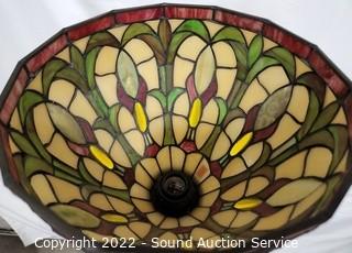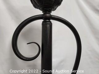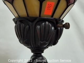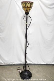 Lot #0066: Bronze Finish Faux Stained Glass Shade Floor Lamp