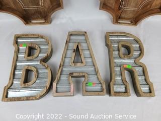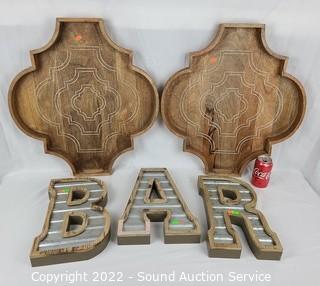 Lot #0076: Galvanized Wood "BAR" Letters & Pier-1 Wood Trays