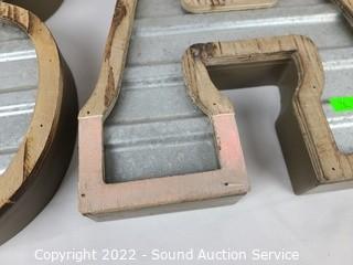 Lot Details: 14" H x 10" W x 1.5" Letters, 23" x 21" x 2" wood trays. Letter A is missing some wood trim.
