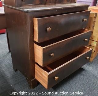 Lot Details: 42" H x 40" W x 20" D. Various scuffs, scratches, wear to finish. Solid wood construction, dovetail joinery.