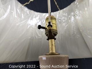 Lot Details: Been rewired, comes with nice shade & brass finial. 32" H x 10" Dia base, 19" Dia shade.