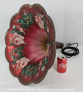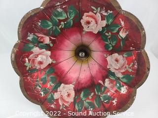 Lot #0067: Vtg. Red & Floral Finish Metal Hanging Lamp