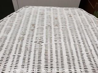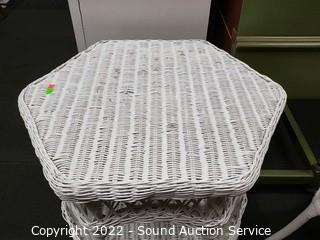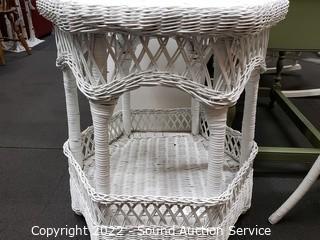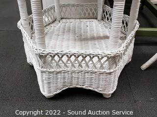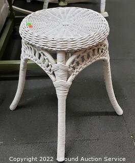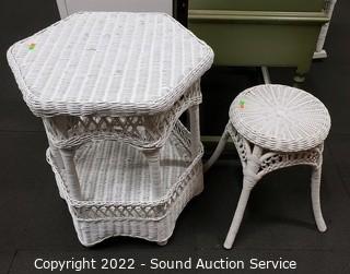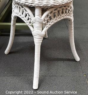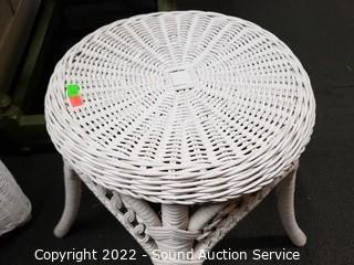 Lot #0037: White Whicker Side Table & Plant Stand/Stool