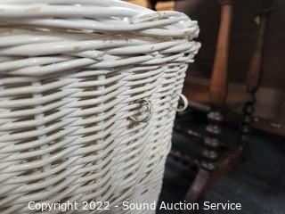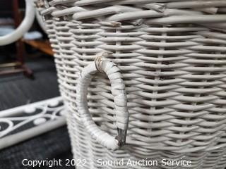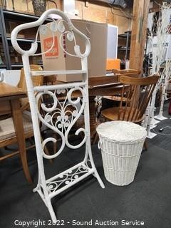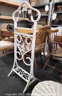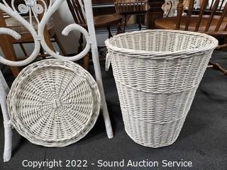 Lot #0057: White Wicker Suit Butler & Waste Basket w/Lid
