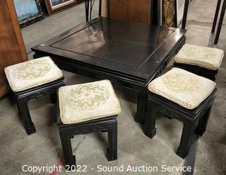 Lot #0006: Asian Black Finish Low Profile Table w/4 Stools