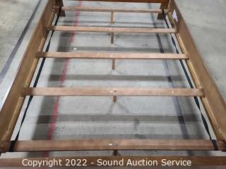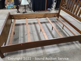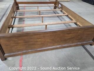 Lot Details: Some minor wear to the finish, overall great condition. 56.6" and 18.5" tall headboard and footboard, 86" long, 64" wide. Matches the previous and next lots.