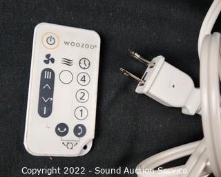 Lot Details: Fan & remote have some tape residue on them. Both work.