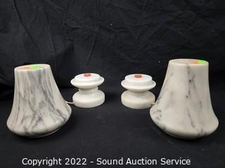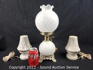 Lot #0054: 2 Marble & 1 Frosted Glass Table Lamps