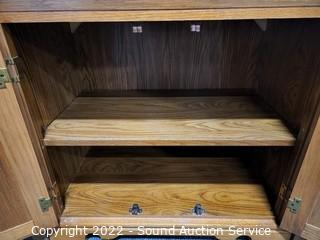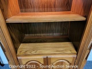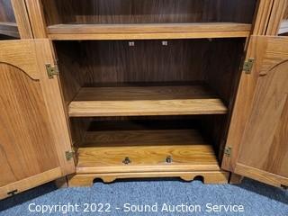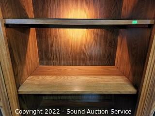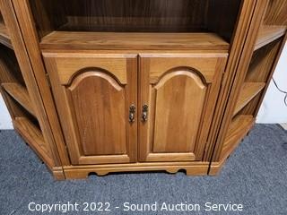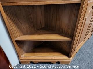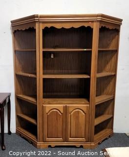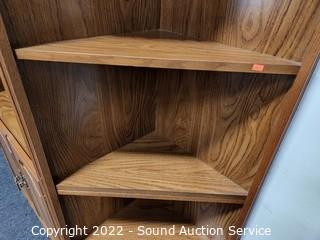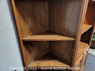 Lot #0014: 3pc Oak Angled Modular Shelving Unit