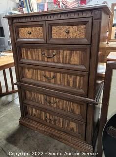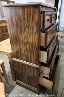 Lot #0017d: 5 Drawer Wood grain Finish Highboy Dresser