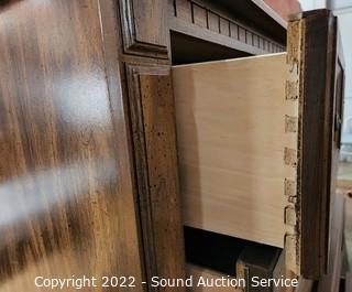 Lot Details: Faux wood grain fronts, laminate finish, particle board construction. Matches the previous lot. 54" H x 40" W x 19" D. Some minor wear to the finish.
