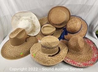 Lot #0133: 6 Woven & Stray Brimmed Sun Hats