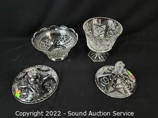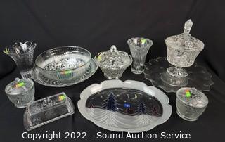 Lot #0120: Assorted Crystal & Clear Glass Table Ware, Decor