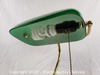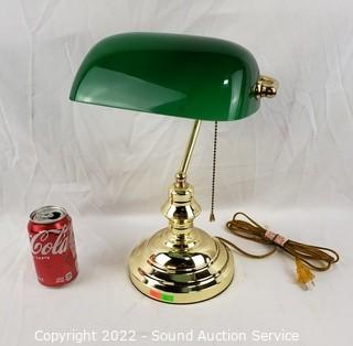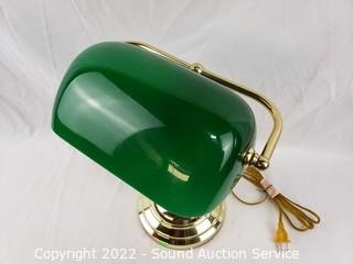 Lot #0107: Brass Finish & Green Glass Executives Desk Lamp