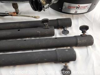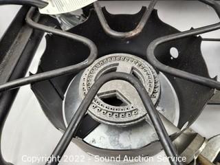 Lot Details: Works. Comes with wind guard & legs. Approx. 7" to 30" H x 33" x 14". Works.