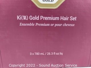 Lot Details: Ki Gold Premium Special Set. Includes: (1) 26.3oz Shampoo, and (2) 26.3oz Conditioners. Factory sealed bottles.