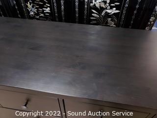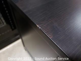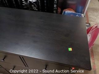 Lot Details: Appears to be solid wood construction, has a crack on right side panel, light wear to finish, overall great condition. Roller drawer guides. 38" H x 64" W x 20" D.