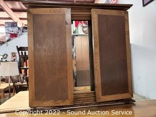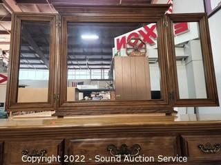 Lot Details: 35" H x 72" W x 20" D with 37.5" H x 66.5" Mirror. Solid wood construction. A few minor scratches on the top, overall in excellent condition.