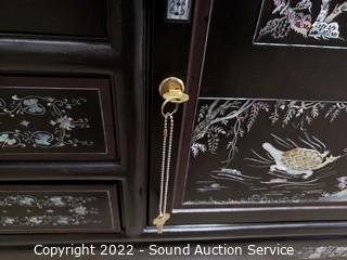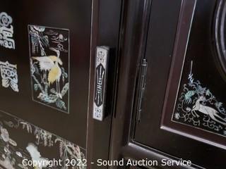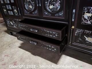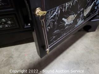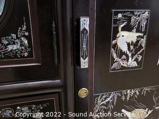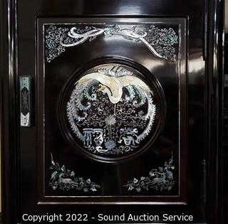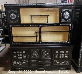 Lot #0039d: Ornate Black Lacquer MOP Inlaid Hutch