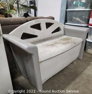 Lot #0172: Weathered Rubbermaid Storage Bench