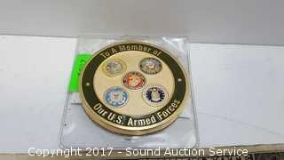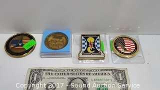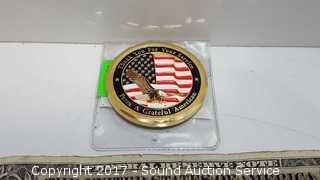 Includes: Grateful American medallion, Operation Iraqi Freedom for Excellence medallion, Japan Ground Self Defense medallion, Phantom Warriors for Excellence medallion.