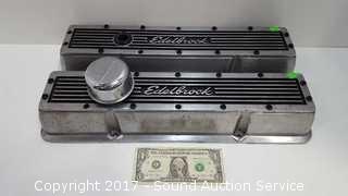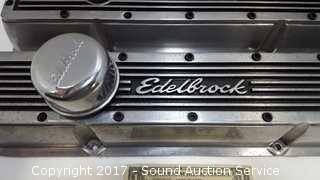 Lot #0166: Edelbrock Aluminum Valve Covers & Misc. Nuts & Bolts