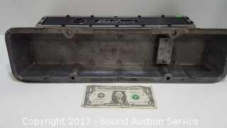 I believe they are for a Chevy 350 small block engine. Approx. 22.5" long, 5" wide. 4 bolt pattern. Missing one of the valve caps. Nuts and bolts possibly to engine parts.