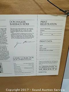 Titled: "Dawn Walker, Bareback Rider". Printed in 1983. #545/1250. Comes with COA on the back. From the Greenwich Workshop Cameo Collection. Framed and matted to museum standards. Approx. 21" x 16.5". Refer to photos for more artist and print information.