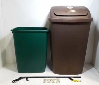 Includes 13.2 gallon swing top garbage can, grabber and other.