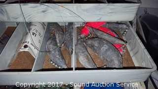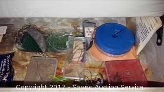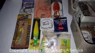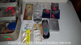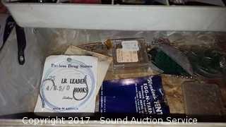 Includes: lead weights, flasher lures, hooks, fly hooks (some still NIP), NIP lures and hooks. Believe to be for steelhead, salmon and trout fishing.