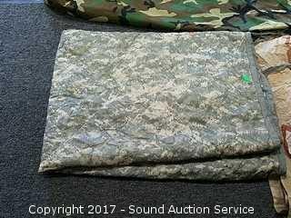 Sleeping bag cover is in like new condition. Blanket is a wet weather poncho liner.