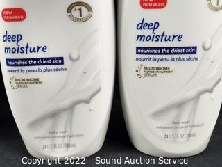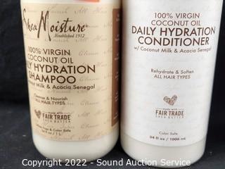 Lot Details: 24oz Dove Deep Moisture Body Wash, 34oz Shea Moisture Coconut Oil Shampoo & Conditioner. All full or mostly full.