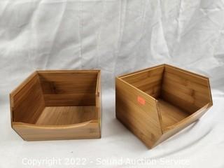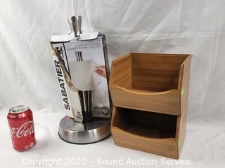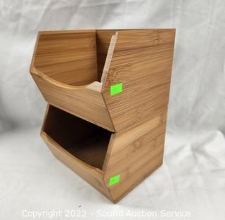 Lot #0211: Bamboo Stackable Bins & Paper Towel Holder