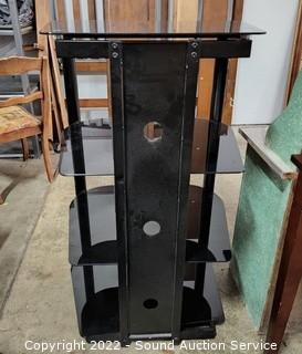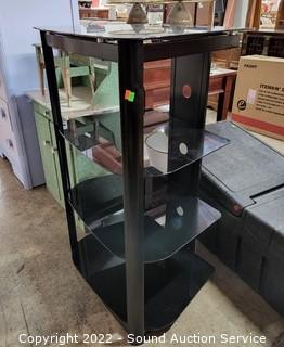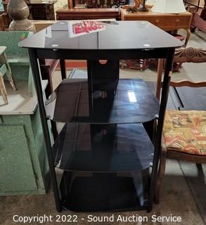 Lot #0160: Black Finish 4-Tier Glass Shelf Media Cabinet