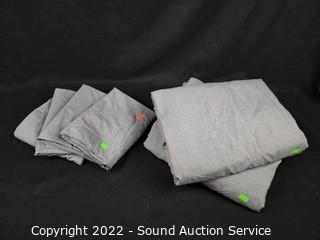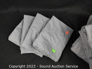 Lot Details: Gray Herringbone print. 1 flat, 1 fitted, 4 pillow cases. Don't see any issues.