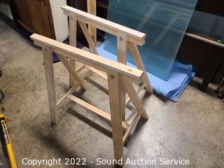 Lot Details: Basically just 2 saw horses with frosted glass top. Don't see any issues. 28" H x 59" x 31.5".