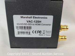 Lot Details: Marshall 3GSDI / HD-SDI to HDMI converter model VAC-12SH, datavideo HDMI to HD/SD-SDI converter model DAC-9P. Unknown condition.