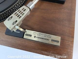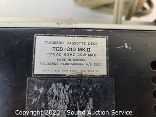 Lot Details:  Both have power, otherwise unknown condition.  Tandberg Model TCD310MkII cassette recorder,  Kenwood KD-5033A Direct Drive Turntable.  Signs of wear from age and use, turntable lid is cracked.
